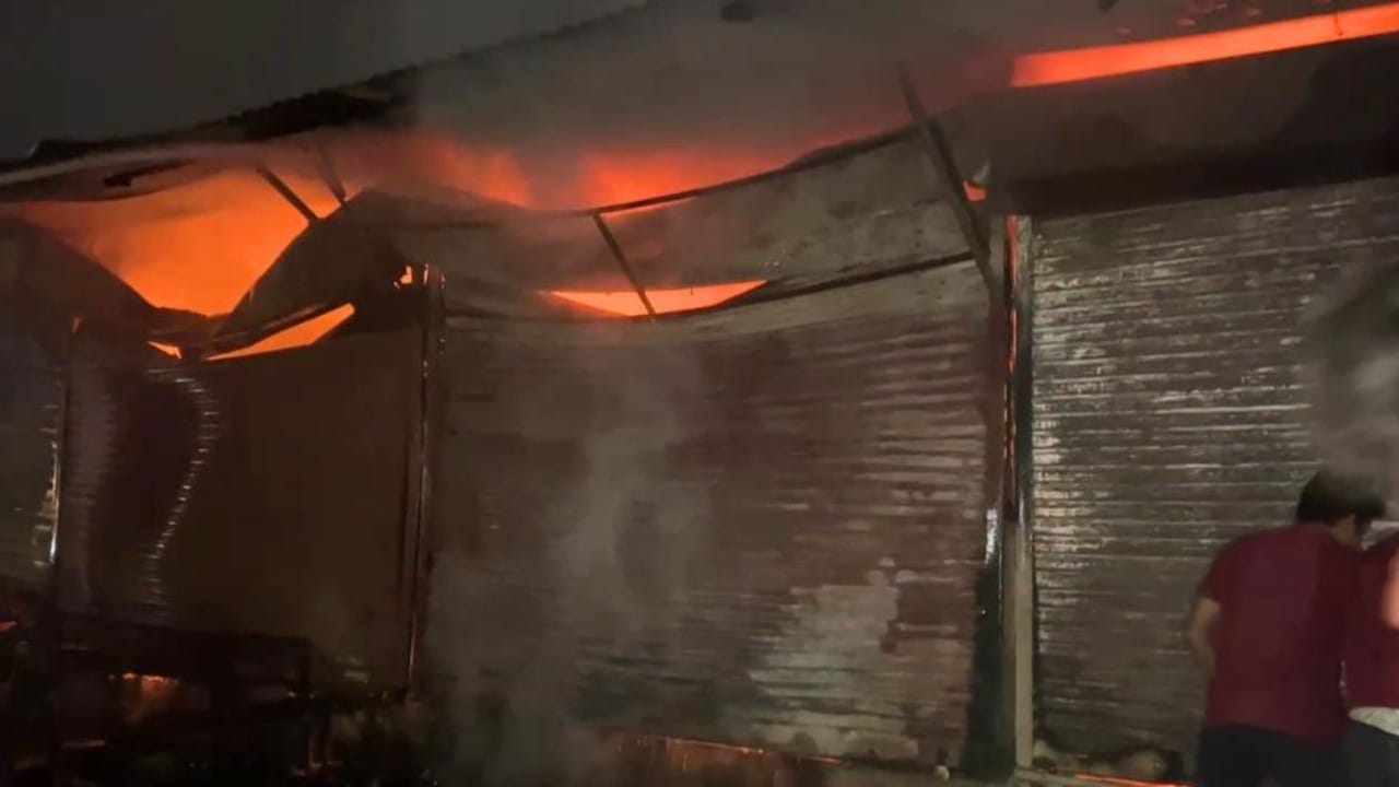 #WATCH | Lucknow, UP: Fire breaks out in a vegetable market near the Phoenix United Mall in Krishna Nagar. Eight fire tenders are currently at the spot, making efforts to extinguish the blaze. No casualties have been reported. Further details awaited. pic.twitter.com/AqevIlDJcK