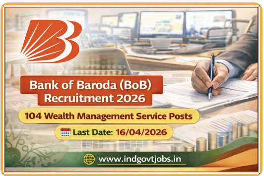 Bank of Baroda (BoB) has invited online applications for engagement of 104 Professionals on fixed term contractual basis in Wealth Management Services Department. Advt. No. BOB/HRM/REC/ADVT/2026/08.