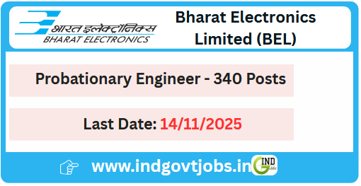 Bharat Electronics Limited (BEL) (A Govt. of India Enterprise under the Ministry of Defence) invites online applications from Fresher Engineering Graduates for recruitment of 340 Probationary Engineer in Electronics, Mechanical, Computer Science and Electrical disciplines. The BEL Probationary Engineer Vacancy 2025-26 Online Registration of Application start from 24th October to 14th November 2025. Interested and eligible candidates must carefully read the detailed BEL notification before filling out the application form.