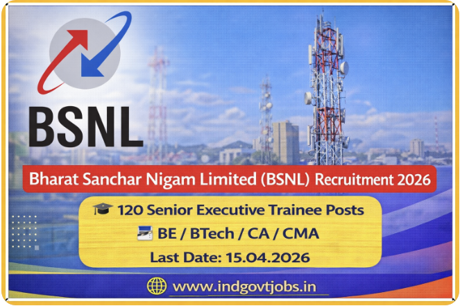 The BSNL Senior Executive recruitment aims to fill tentative vacancies in various disciplines to strengthen BSNL’s operations across the country. The BSNL Senior Executive Trainee Recruitment 2026 for 120 Tentative Vacancies Online Registration starts from 05th February 2026 and closes on 31st March 2026. The last date for registration has been extended up to 15th April 2026.