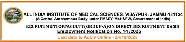 AIIMS Jammu Faculty Vacancy Recruitment 2025