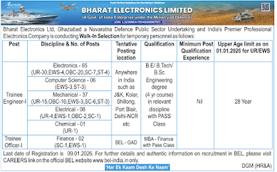 Bharat Electronics Limited (BEL), Nandambakkam, Chennai, a Navratna PSU under Ministry of Defence, Government of India, conducts Walk-in Selection for One Year Apprenticeship Training under the Apprentices Act 1961. The BEL Apprenticeship Training 2026 for 99 Posts (64 Graduate, 10 Diploma, 10 Optional & 15 ITI Apprentices). Eligible candidates from Southern Region states attend Walk-in … Read more
