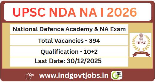 UPSC NDA NA I Recruitment 2026 Notification, Online Form, 394 Vacancies | Last Date 30 December