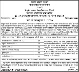 Central Sanskrit University (CSU), New Delhi invites online applications for filling up various Non-Teaching posts under Adarsh Sanskrit Mahavidyalaya / Adarsh Sanskrit Shodh Sansthan Scheme at CSU, Delhi. The CSU Non Teaching Recruitment 2026 (Advertisement No. 01/2026) for 43 Posts. Online applications open from 28th January 2026 and close on 27th February 2026 (11:30 PM). … Read more