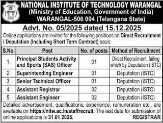 NIT Warangal Recruitment 2026 Apply Online for 07 Non Teaching Posts | Last Date 31.01.2026