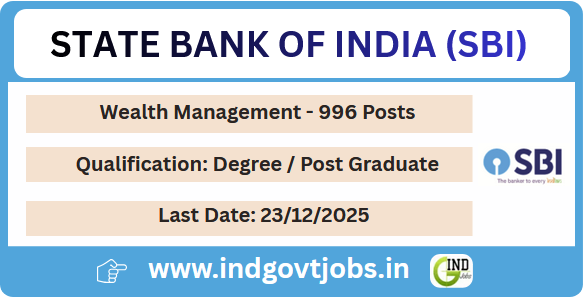 State Bank of India (SBI) has announced the recruitment of 996 Specialist Cadre Officers on contract basis for Wealth Management roles. Eligible Indian citizens can apply online from 02nd December 2025 to 23rd December 2025 for these prestigious positions across various circles. Candidates are advised to review the detailed SBI Wealth Management Recruitment 2025-26 notification … Read more