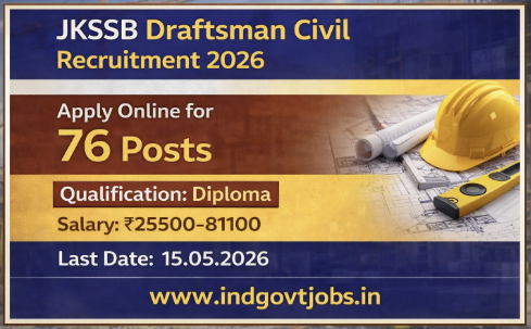 Eligible candidates are strongly advised to carefully read the detailed official notification before applying online to confirm eligibility regarding age, qualification, experience, category, reservation, and other criteria. The JKSSB Draftsman (Civil) Posts Recruitment 2026 for 76 Vacancies Online Registration process starts from 15th April 2026 and closes on 14th May 2026.
