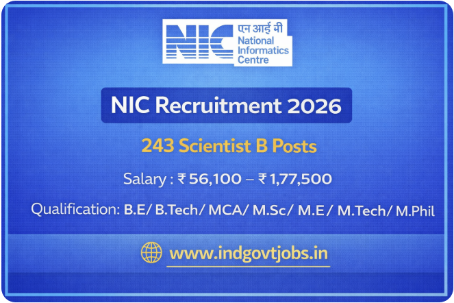 National Informatics Centre (NIC), Ministry of Electronics and Information Technology, Government of India has invited online applications for direct recruitment to 243 posts of Scientist ‘B’ in various disciplines on Group-A Gazetted basis.