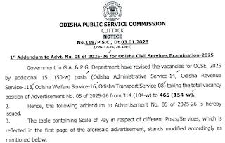 Odisha Public Service Commission (OPSC), Cuttack, has released the notification for Odisha Civil Services Examination 2025 (Advt. No. 05/2025-26), inviting online applications for recruitment to 465 posts in various Group A and Group B services. Eligible graduates are encouraged to apply online from 20 January 2026.